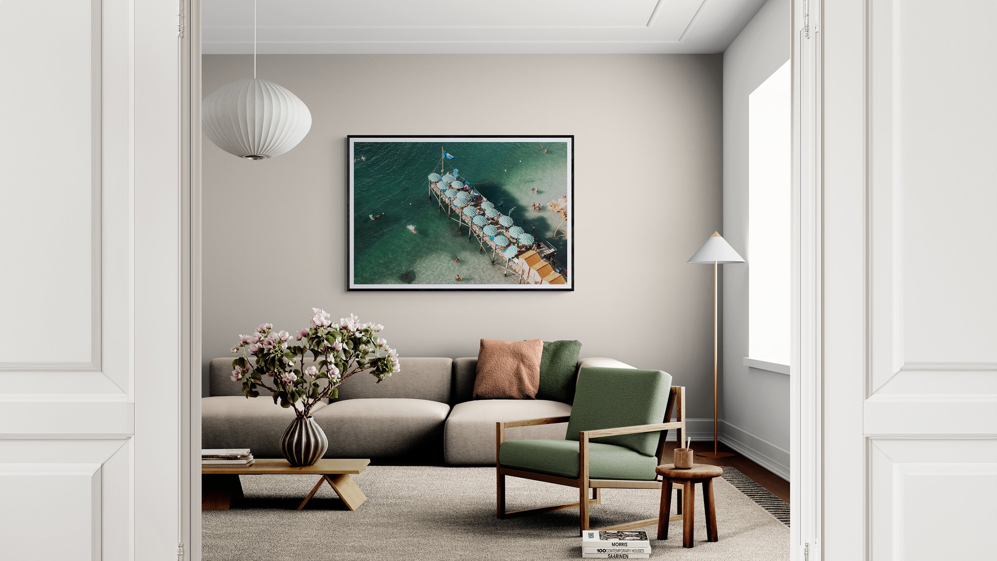Juxtaposing sleek lines with organic shapes is a way to achieve this look – such as thin wooden legs on a dresser or table.