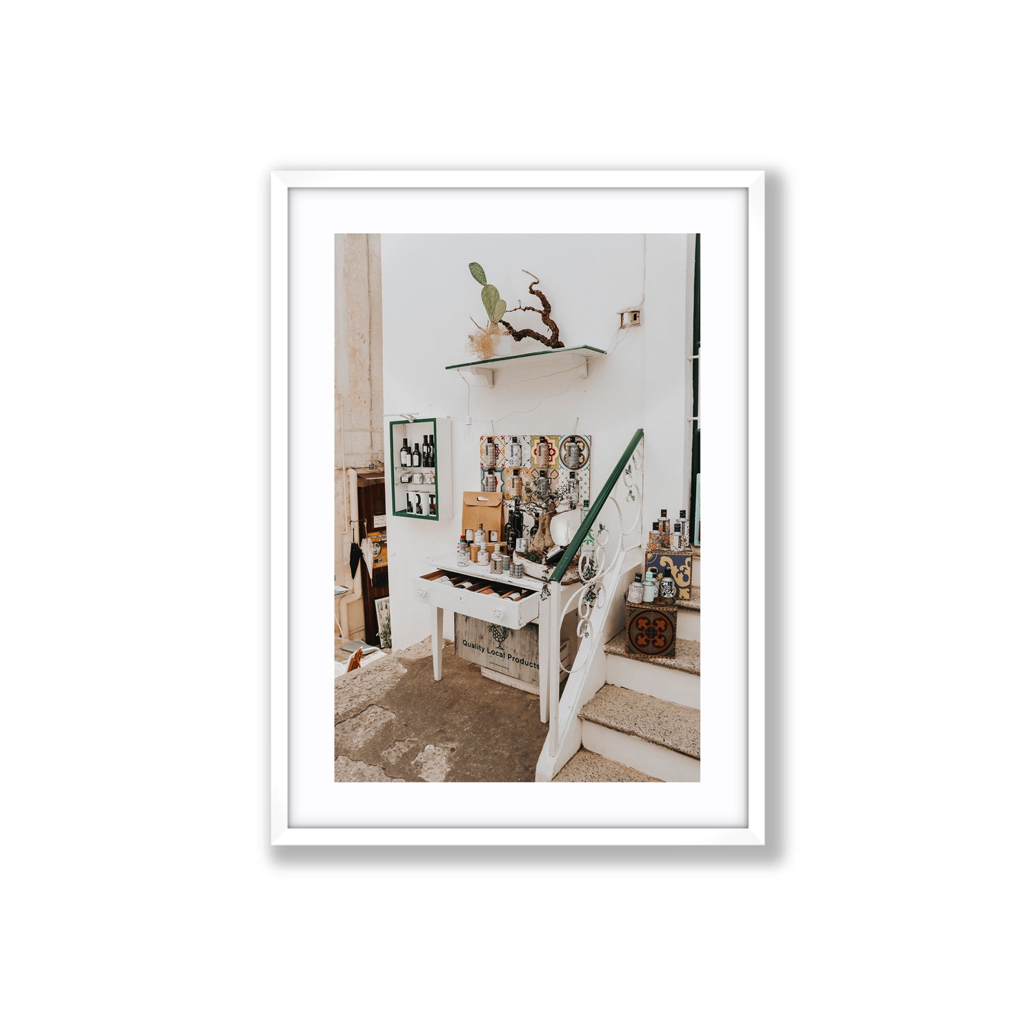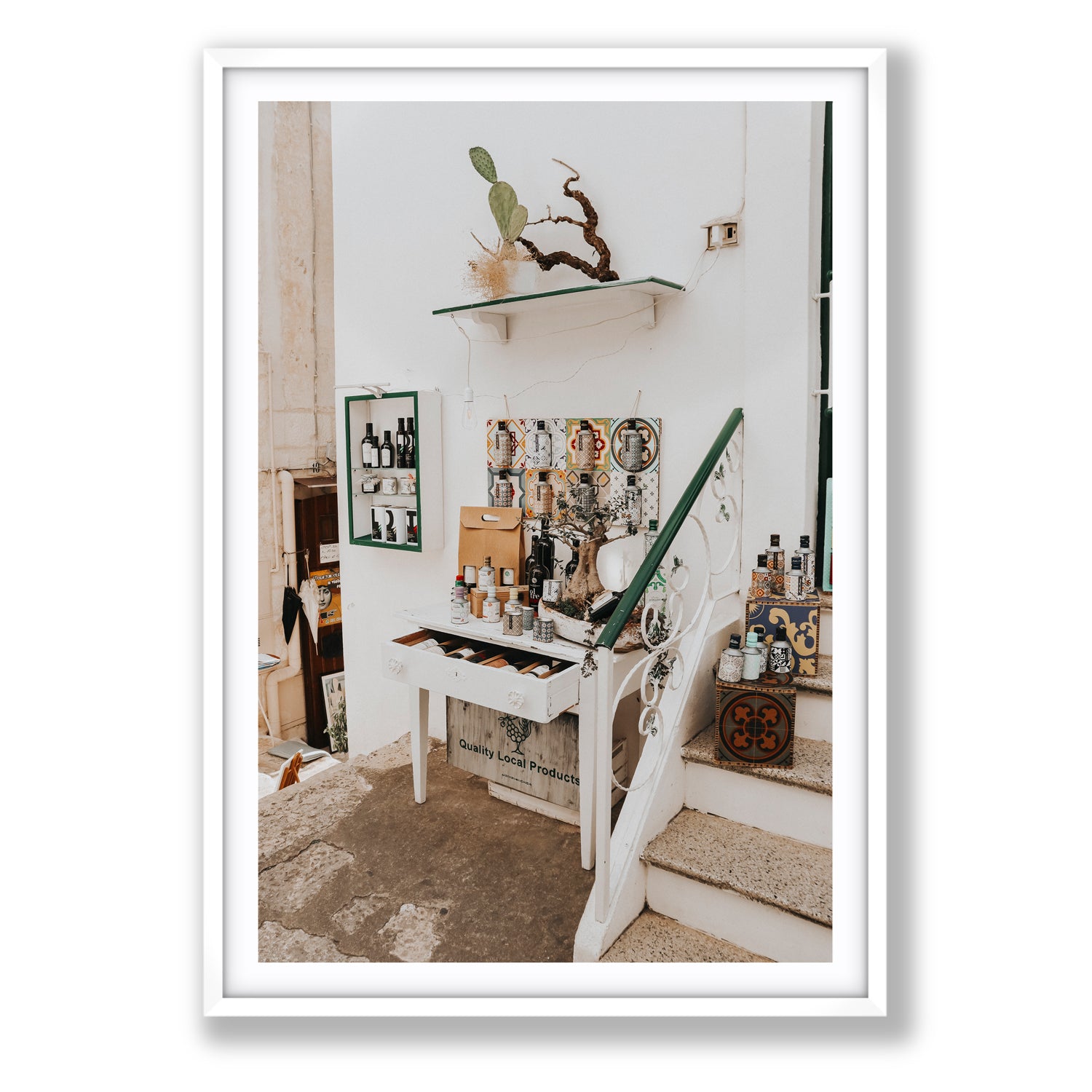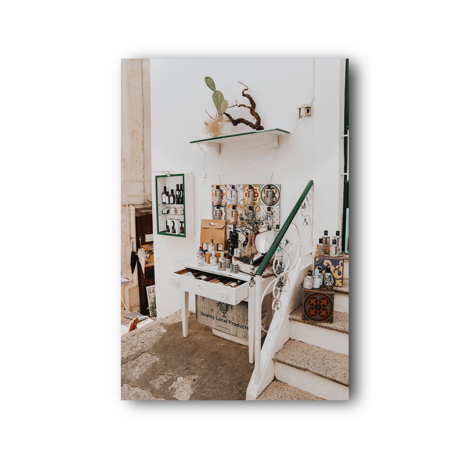 ‘Liquid Gold’ fine art photography print captures the heart of Puglia’s most treasured export - olive oil - beautifully displayed in a charming local shop. With artfully arranged bottles, hand-painted tiles, and rustic accents like driftwood and olive branches, this scene pays homage to the tradition and pride behind Puglia’s olive oil culture. As Italy’s top olive oil-producing region, home to more than 60 million trees, Puglia is often referred to as the land of liquid gold. This print is a tribute to the craftsmanship, flavours, and everyday beauty of the region, perfect for kitchens, dining spaces, or homes that embrace Mediterranean charm.