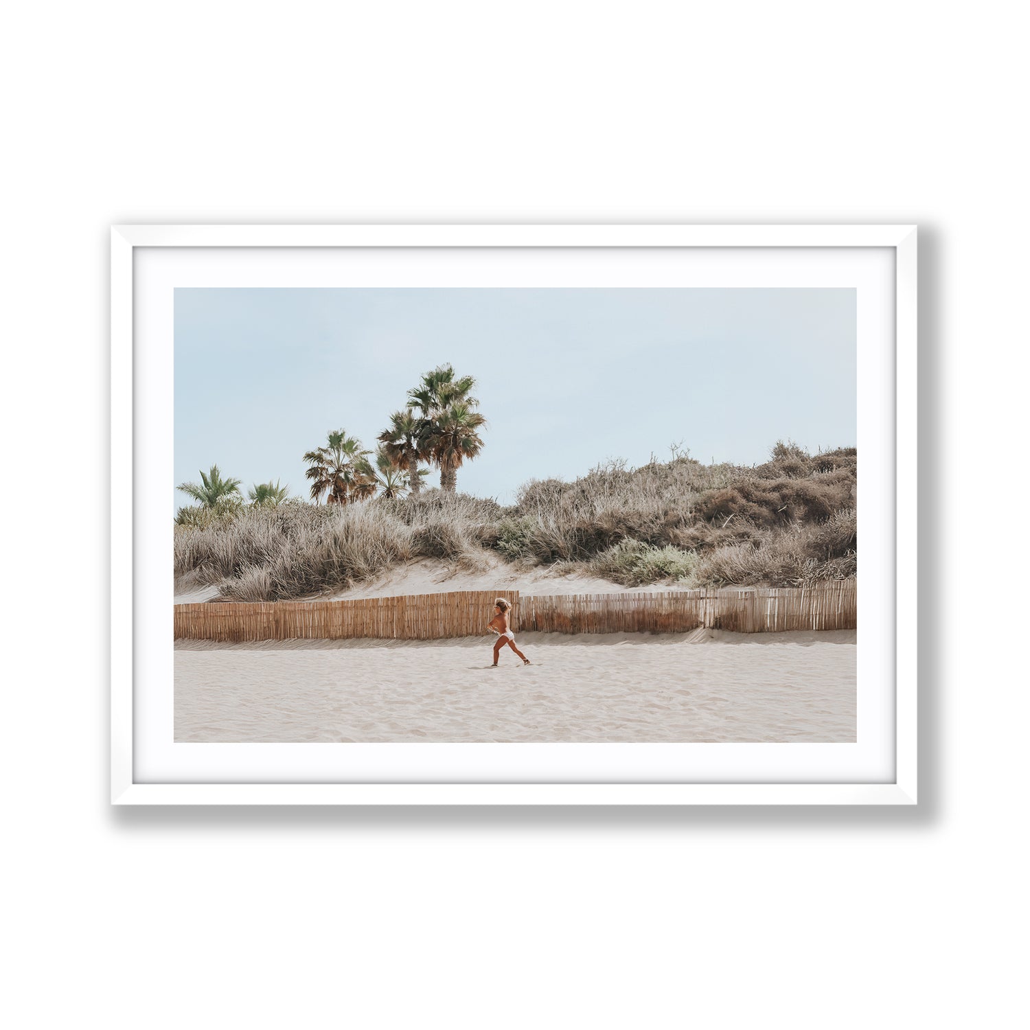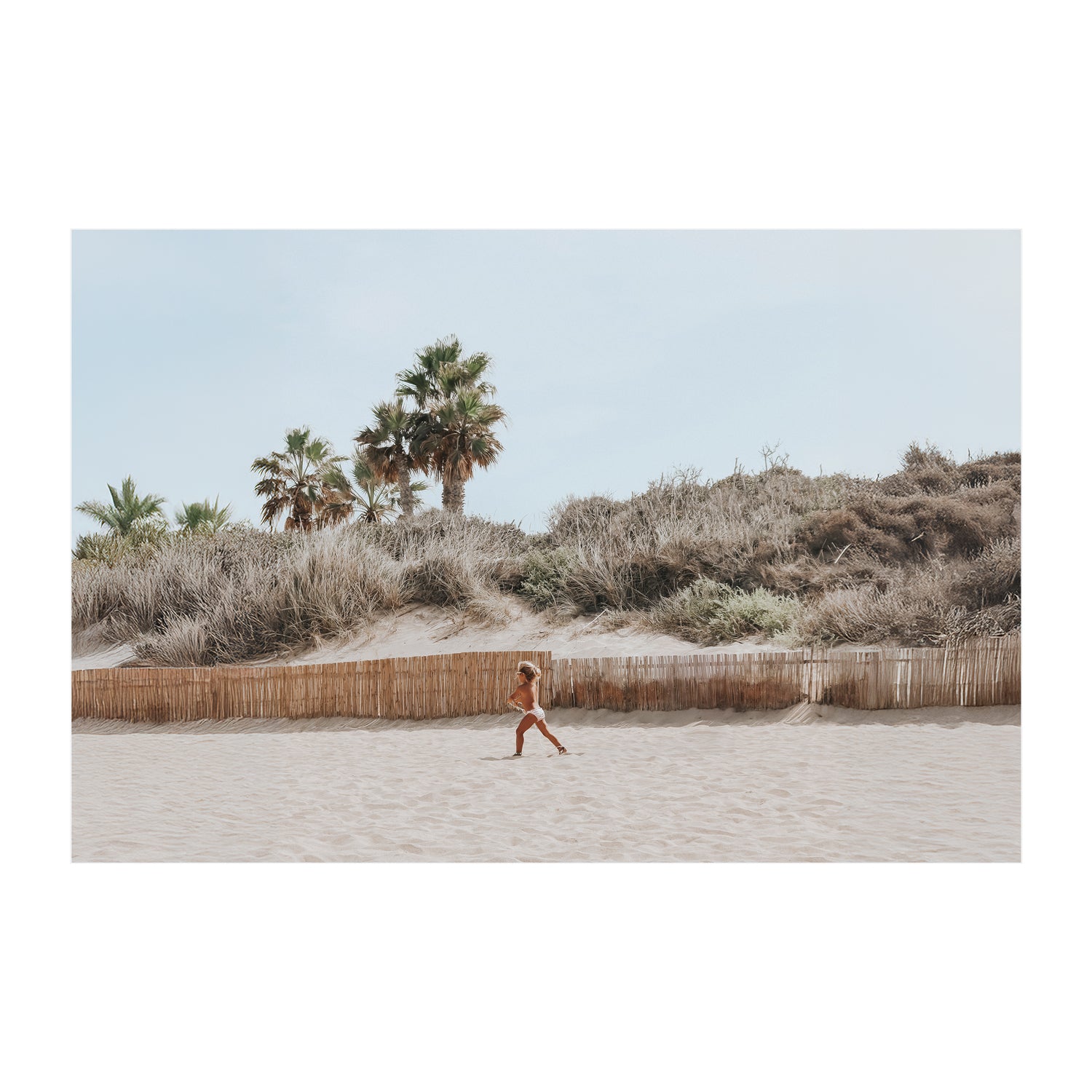 ‘Ragazza Da Spiaggia’ - meaning “beach girl” in Italian - captures a fleeting, joy-filled moment on the golden sands of Savelletri, near Coccaro Beach Club. This fine art photography print is a celebration of childhood freedom and the sun-soaked rhythms of southern Italy. The barefoot sprint across soft sand, framed by native grasses and swaying palms, evokes a nostalgic sense of summer - playful, pure, and full of movement. A print that brings warmth and life into any space.