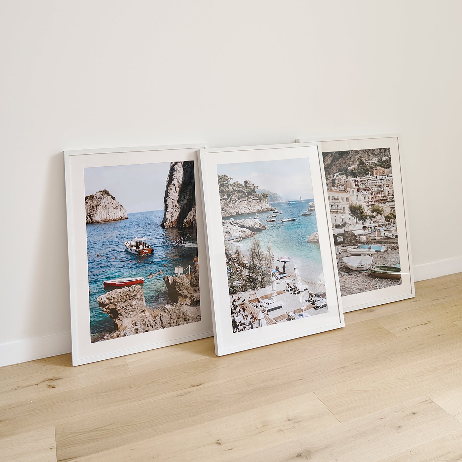 Our frames are expertly handcrafted from high-quality, sustainable wood and come in Gallery Classic and Gallery Statement styles, available in white, black, or natural oak finishes. Each print is produced using museum-quality fine art giclée printing techniques on premium, archival paper to ensure superior clarity and longevity. We use acid-free, lignin-free materials to prevent yellowing or deterioration, and mount each print on acid-free foamcore for added durability. To protect your artwork, we use UV-resistant acrylic plexiglass, shielding it from sunlight and ensuring a lasting, gallery-quality display.